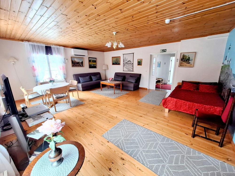 Taloon mahtuu isompikin porukka. Vuodepaikkoja 9 + 2, peitot ja tyynyt kuuluvat varustukseen. Asiakas tuo omat liinavaatteet.