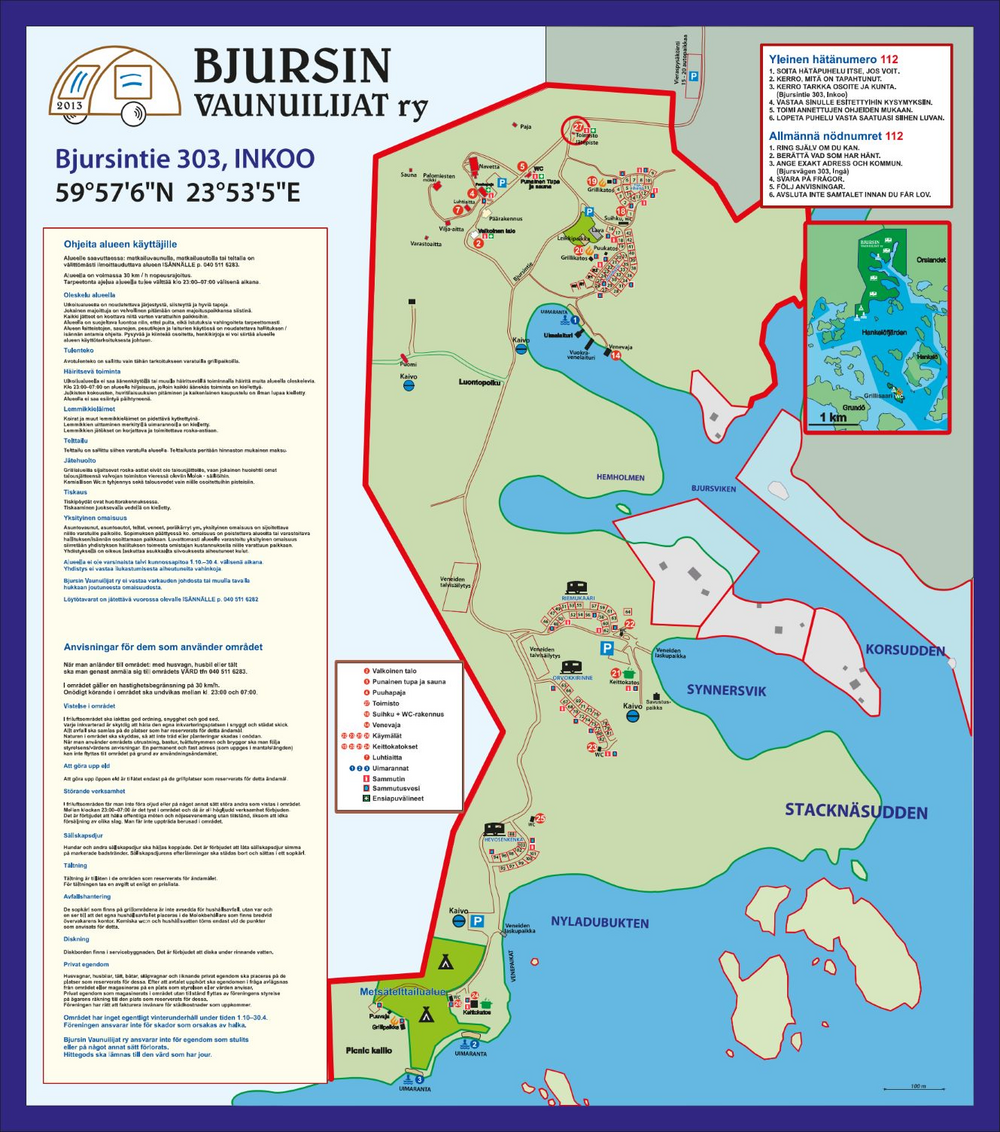 Ajo-ohje: Helsinki-Hanko-tieltä (51) Inkoon liittymän kohdalta kohti Inkoon satamaa. Noin 1,5 km jälkeen käännös oikeaan Fagervikiin (7 km), josta vasemmalle kohti Barösundia (8 km). Barösundin lossi vie Orslandet-saareen. Lossin jälkeen mäen päältä alkava viitoitus "Bjurs" ohjaa ulkoilualueelle.