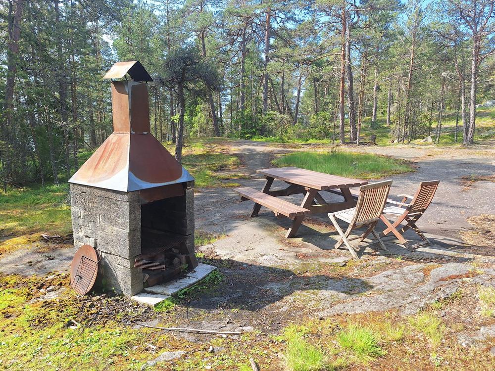 3. Rannan luo vievällä polulla on pieni grilli ja puuvaja.
